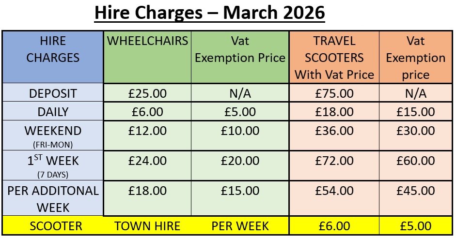 Every Monday a New Hire Period Begins. Scooters & Wheelchairs be return by 3.30pm.